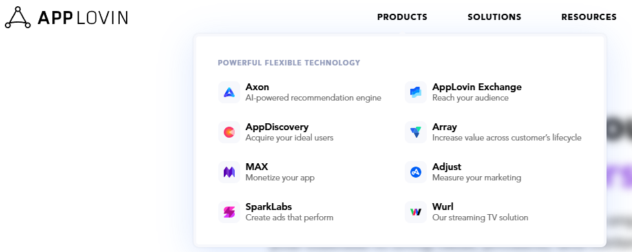 소프트웨어 사업의 대표적인 제품은 애플로빈 소프트웨어 플랫폼(AppLovin Software Platform)입니다. 이 플랫폼은 개발자들이 앱을 더 효과적으로 홍보하고, 광고를 통해 수익을 창출하며, 사용자 데이터를 분석하여 최적화할 수 있도록 돕습니다. 특히, 머신러닝 알고리즘을 활용한 맞춤형 광고 추천 기술은 광고주에게는 높은 광고 효율을, 개발자에게는 더 큰 수익을 제공합니다. 주요 서비스로는 MAX(앱 수익화 플랫폼)와 AppDiscovery(사용자 확보 솔루션)가 있습니다.